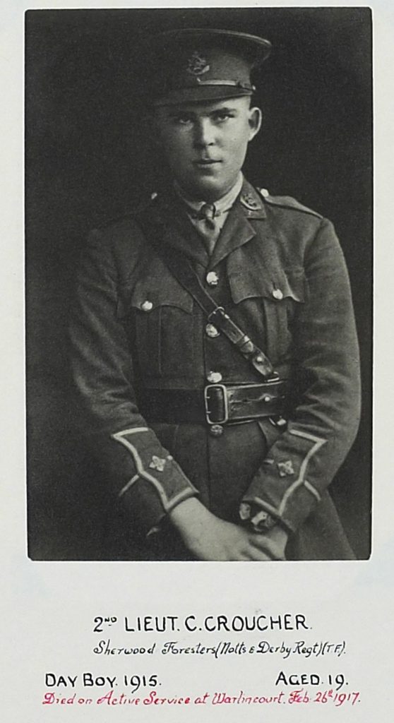 A567 2nd Lieutenant Cecil Croucher, 6th Battalion, Sherwood Foresters, died 26th February, 1917. Courtesy of Michael Briggs.