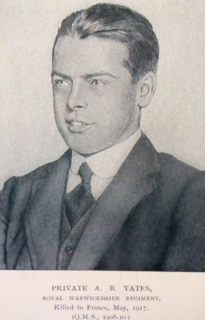 A720 Arthur Bennion Yates, 15th Battalion, Royal Warwickshire Regiment, killed in action, Arras, 9 May 1917. Courtesy of Paul Hughes.
