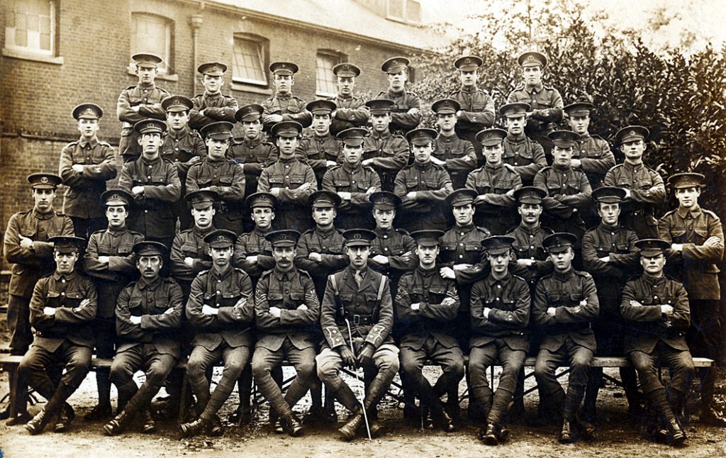 G1115 2/5th Battalion, South Lancashire Regiment, with Fred Barber (second left, second row down), 21 November 1916. Courtesy of Anne Lomas.