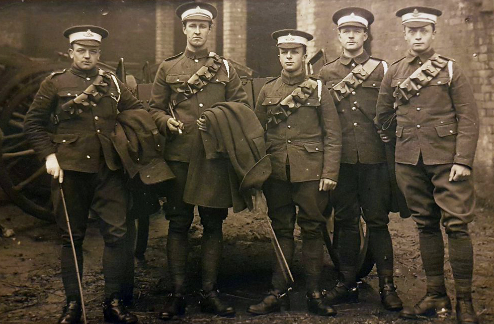 G789 Officer cadet group,119th Battery, 27th Battalion, Royal Field Artillery Special Reserve, Harry L. Staniland far left. Courtesy of Will Staniland.