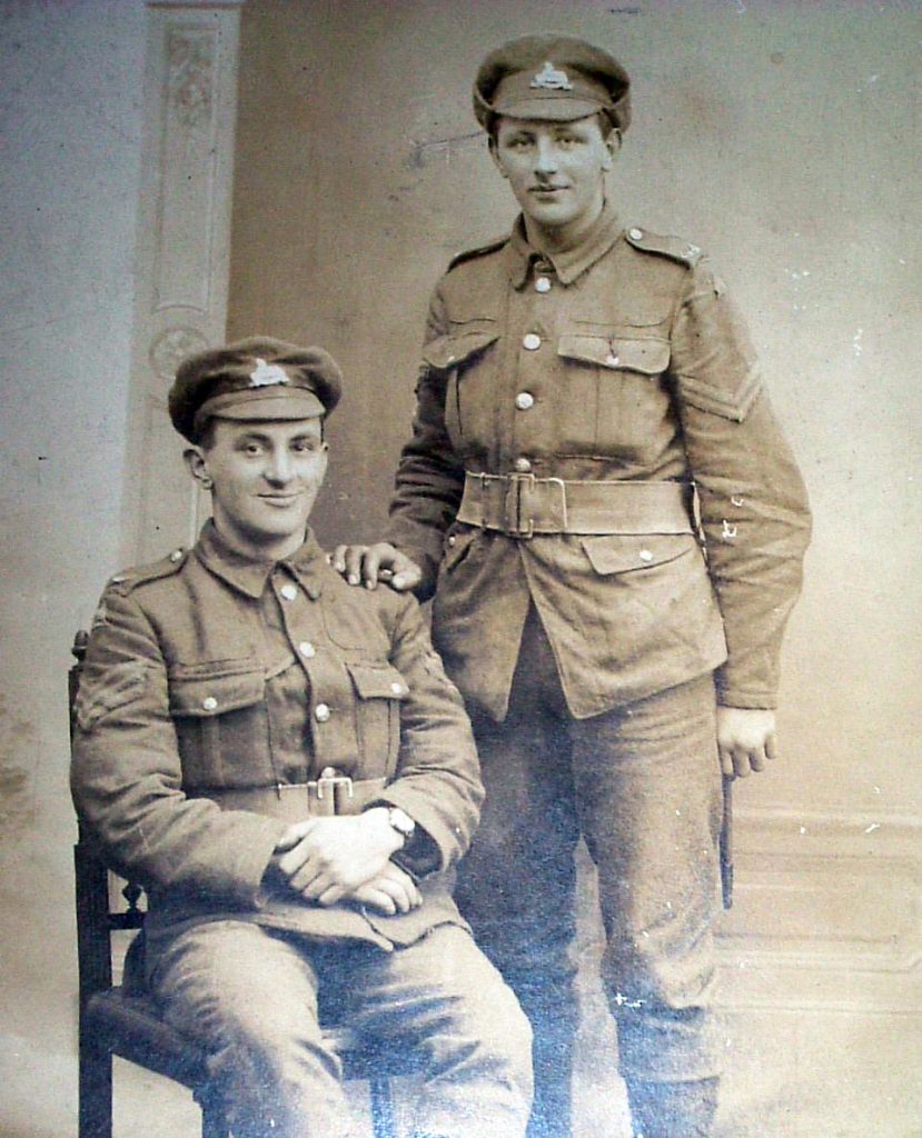 G866 Sergeant George Porter of Alford (seated) and Cpl Harry Wordsworth of Gainsborough, 5th Battalion, Lincolnshire Regiment. Courtesy of Steve Bramley.