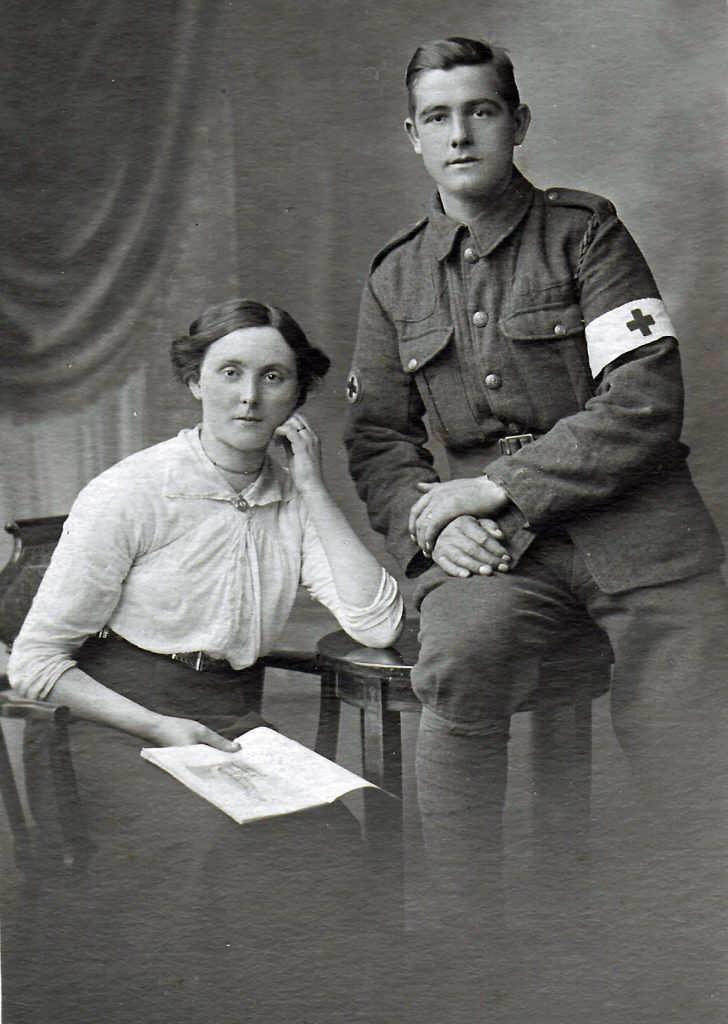F098 Unnamed soldier,Royal Army Medical Corps and lady, Cloud Studios, Lancashire studio.