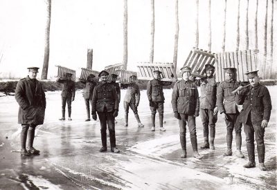 G775 Royal Engineers, with Frank Ernest Elliott (standing left) and Albert John Gander, France. Written to Mr. J. Gander, 21 Grecian Road, Tunbridge Wells.