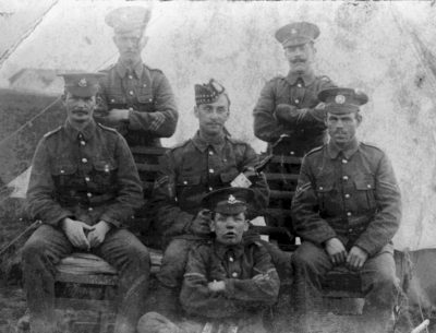 G803 Royal West Surrey Regiment pals with Dennis Sydney Huckett (centre front). Courtesy of Rosemary Huckett.