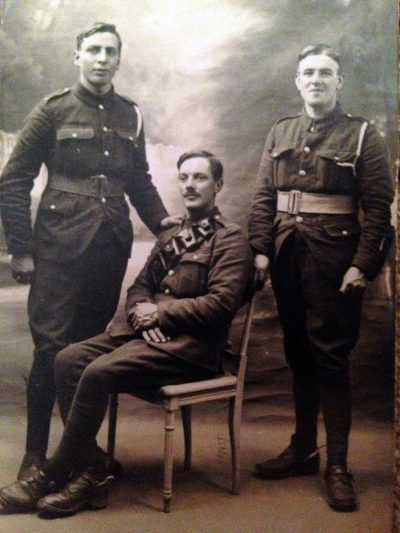 G758 Walter Jones (centre) and pals, 9th Battalion, King’s Liverpool Regiment, France, 1915. Courtesy of Angela Collinson.