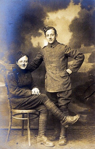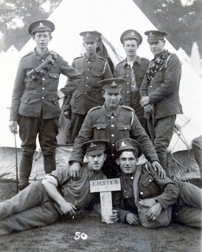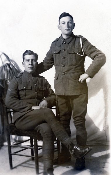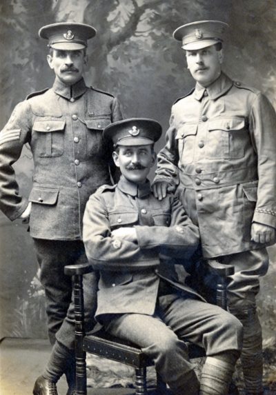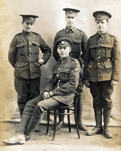 G398 Prince of Wales’s Own (West Yorkshire Regiment), with Sergeant James P. Fletcher (left) of 10, Denby Street. Alfred Wrate Studio, Lincolnshire.